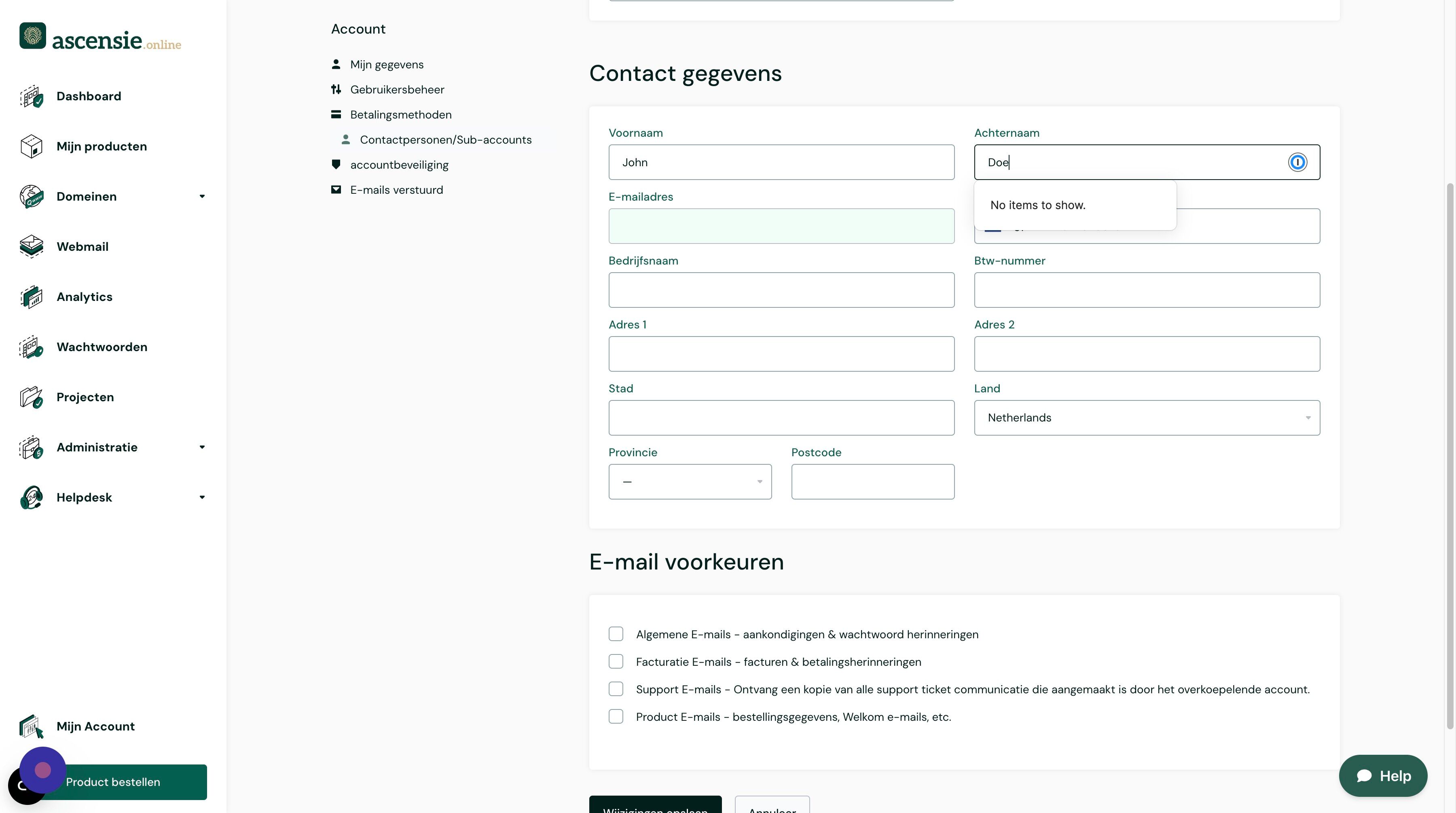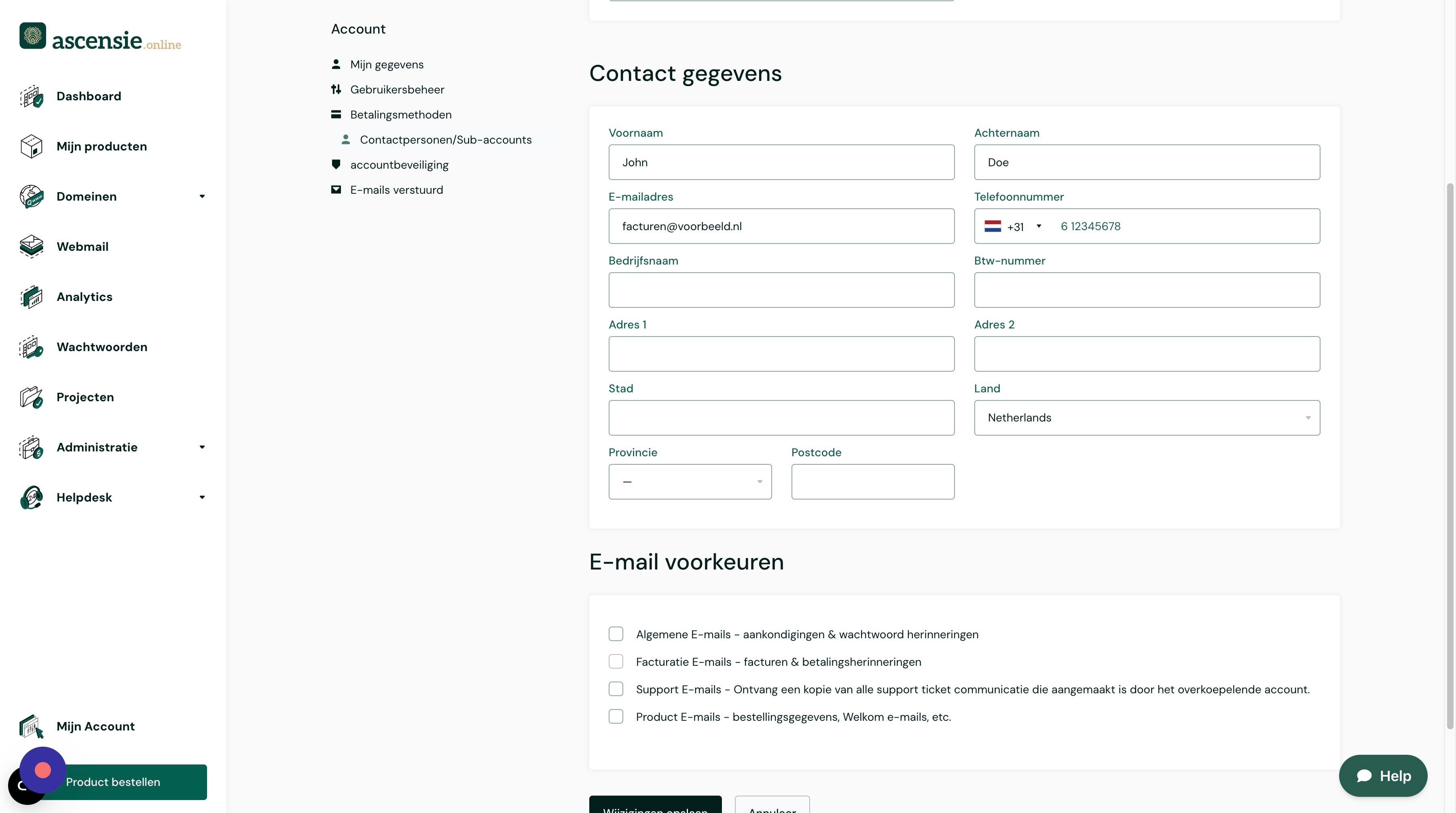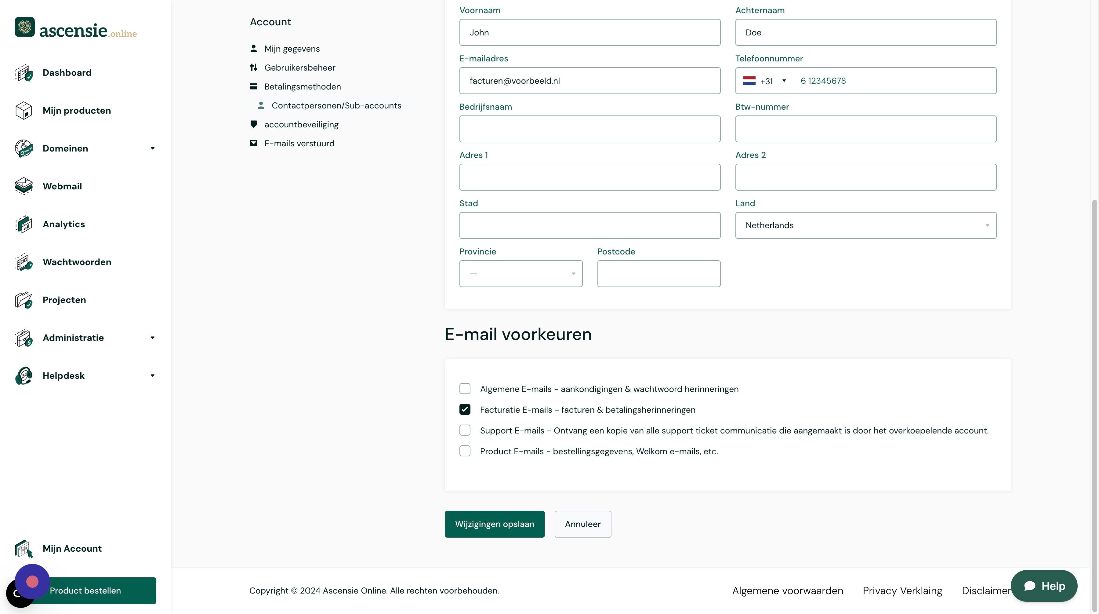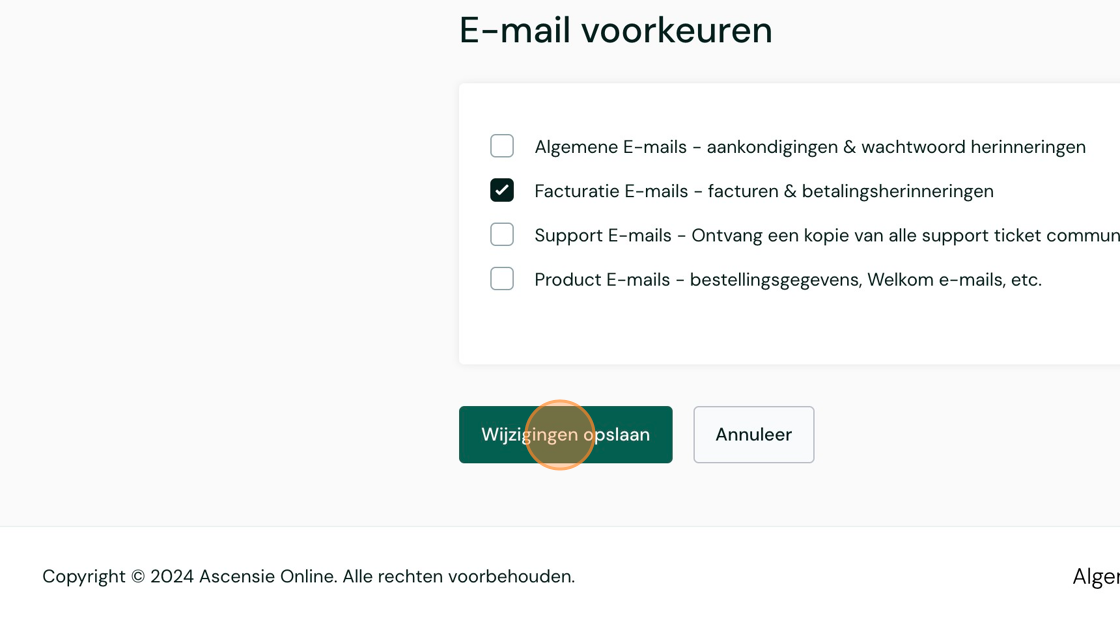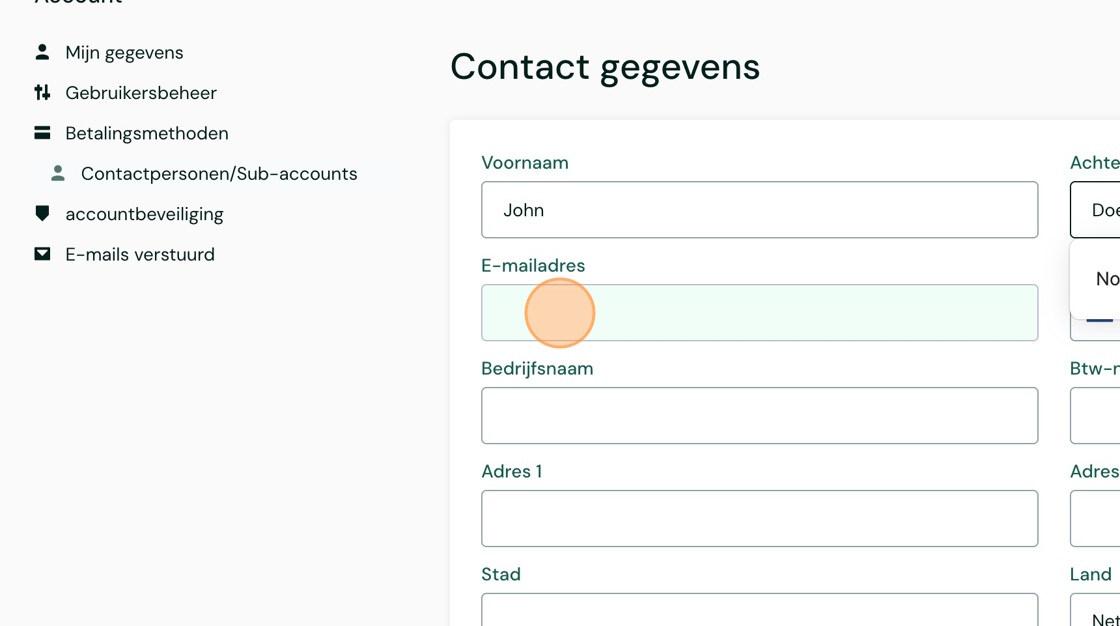 5. Voer het emailadres in waar de facturen naartoe moeten.